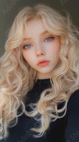 woman, portrait, blond, curly, hair, young, closeup, feminine, serene, beauty, model, face, eye, lip, fair, coiffure, fashion, natural, elegance, softness, bright, glow, expression, gaze, aesthetic, confident, alluring, delicate, light, gentle, peaceful, captivating, chic, radiant, smooth, charming, contemporary, stylish, sophisticated, timeless