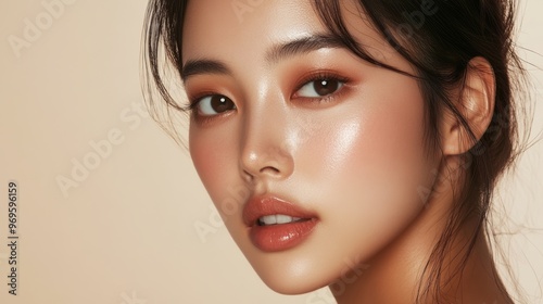 woman, face, portrait, closeup, skin, beauty, young, model, eye, eyebrow, lip, make-up, cosmetic, skincare, healthy, glow, natural, clear, flawless, honed, attractive, charming, asian, korean, elegant, fashion, style, beautiful, bright, clean, soft, gorgeous, smile, happy, pretty, lady, girl, closeup, eye contact, looking, soft focus, feminine, natural beauty