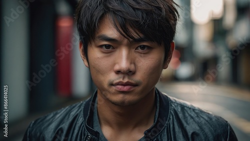 Closeup portrait of an attractive young Japanese man looking at camera