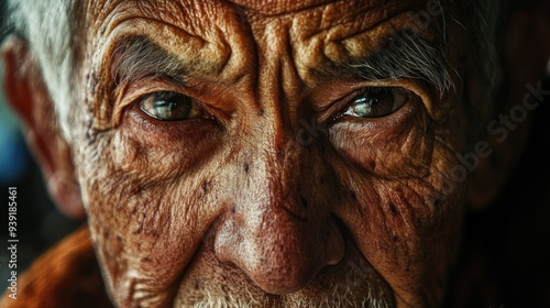 Close-up Portrait of an Elderly Man's Face with Wrinkles and Deep-set Eyes