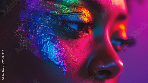 Close-up portrait of beautiful young woman with bright make-up