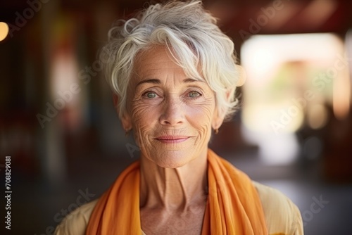 Close-up portrait of elderly woman casual portrait of aucasian Asian portrait woman on pastel background , Generative AI