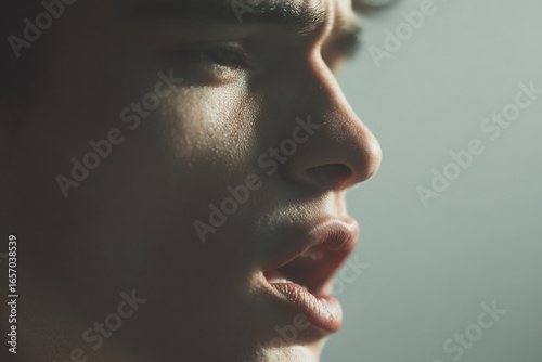closeup, portrait, man, open, mouth, taking, deep, breath, expressing, pure, emotion, face, determination, hope, positive, change, life, raw, energy, resilience, background, clean, soft, tone, feature, emotion, lighting, highlighting, contour, adding, depth, expression, image, moment, vulnerability, strength, inspiring, hugs
