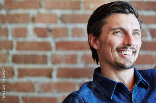 accomplishment, aspiration, business, businessman, businessperson, california, casual attire, closeup, clothing, confidence, content, employee, enjoyment, entrepreneur, fun, happiness, happy, high technology, hip, horizontal, individuality, meeting, man, occupation, office, 1, portrait, pride, frisco, smiling, success, work, working, workplace, young, looking away, looking up, caucasian, white, man, male, person, people, adult, adult, 20s, grown-up