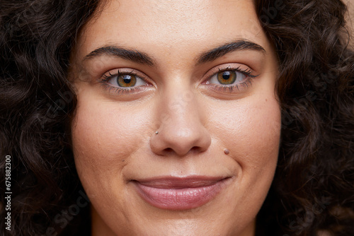woman, adult, young, caucasian, alone, natural, beauty, portrait, beautiful, skin, body, face, femininity, closeup, brunette, curly hair, hazel eyes, studio, people, horizontal, look, head shot, smile, 1