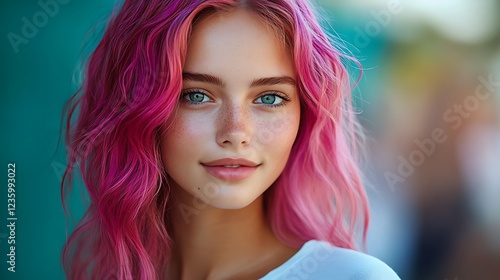 woman, hair, portrait, beauty, pink, closeup, smile, eye, face, young, girl, fashion, style, make-up, pretty, gorgeous, attractive, modern, trendy, colours, haircolor, curly, natural, photo, image, model, portraiture, lifestyle, close, beautiful, elegant, fashionable