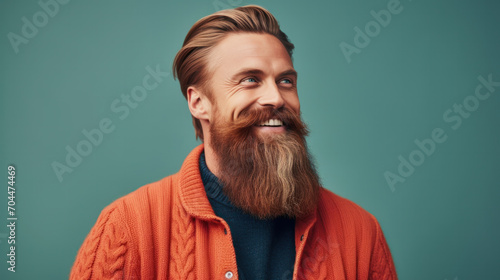 closeup portrait red haired man with beard in park outdoor. pensive attractive redhead ginger guy with on natural background