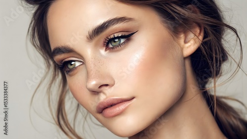 Close‑up portrait with digital eyeliner enhancements under soft lighting—merging beauty tech with graphic design accents.