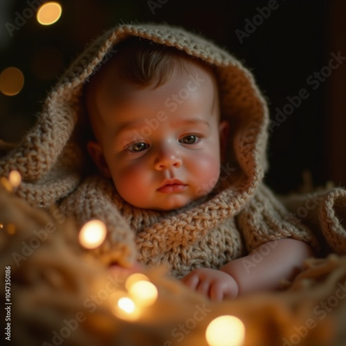 portrait, baby, christ child, christmas, closeup, light, celebration, christianity, tenderness, joy, artlessness, childhood, newborn, beauty, adorable