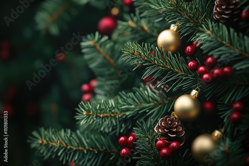 christmas, tree, pine, cone, red, berry, evergreen, festive, holiday, decoration, winter, snowflake, ornament, gift, present, celebration, joy, merry, cheer, seasonal