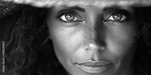 Close-up shot of a woman wearing a hat