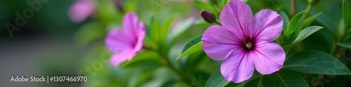 Close-up shot of vibrant purple flowers blooming amidst lush green leaves in garden, plant, flora