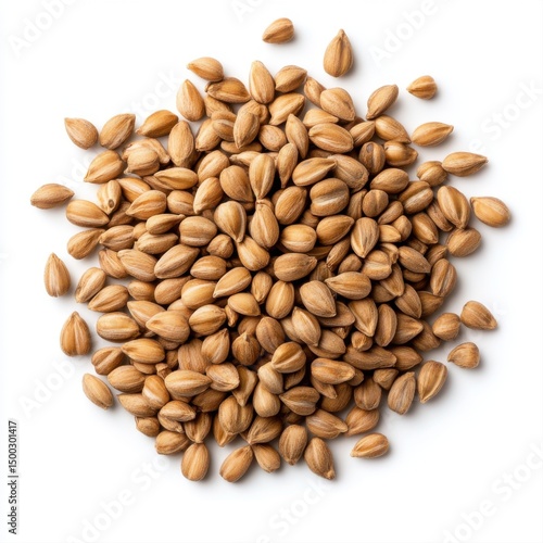 Close-Up View of Brown Seeds Piled Together on White Background for Health
