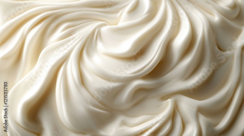Close-up view of creamy white yogurt. Natural, smooth texture. Soft flowing waves, swirls. Perfect for food product advertising beauty product marketing. Fresh, healthy dairy product. Creamy texture