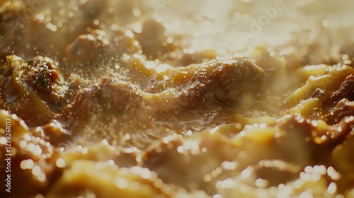 Close-up view of delicious food preparation in progress. A culinary masterpiece being crafted.