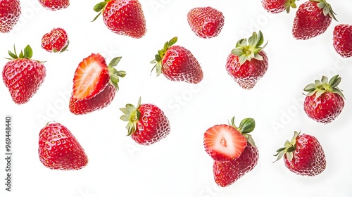 Closeup View of Fresh Ripe Red Strawberries on White Background