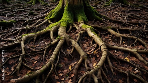nature, tree, root, forest, moss, ground, earth, timberland, growth, strong, deep, texture, organic, textured, dirtied, green, brown, surface, autumn, leaf, tree branch, natural, wood, foliage, bark, trunk, environment, life