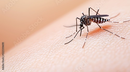 Close-Up View of Mosquito Feeding on Human Skin in Soft Lighting