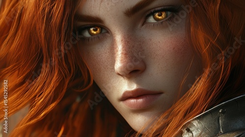 Closeup woman red hair golden eyes