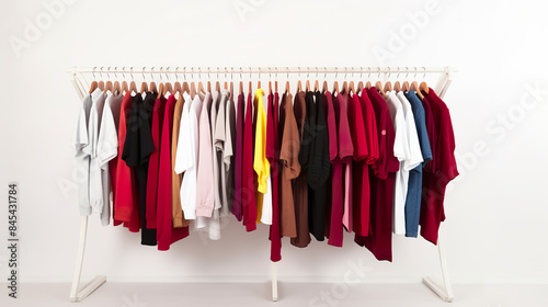 Clothes hanger at the contemporary boutique, isolated against a white background