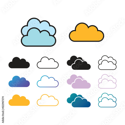 cloud, business, buttons, collection, concept, design, flat, icon, illustration, cyberspace, isolated, recycling, set, signs, symbol, trash, vector, web, website, cloudy