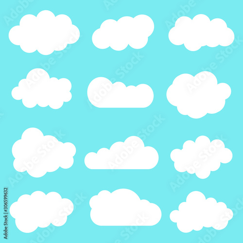 Cloud icon set. Vector illustration. Different cloud shapes. Flat cloud collection.