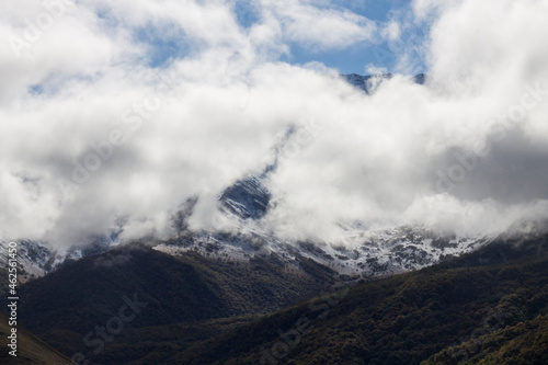 sky, mountain, landscape, nature, mountain, cloud, cloud, snow, summer, alps, travel, green, peak, panorama, view, vale, panoramic, rock, cloudscape, high, time, beauty, outdoors, forest, hill