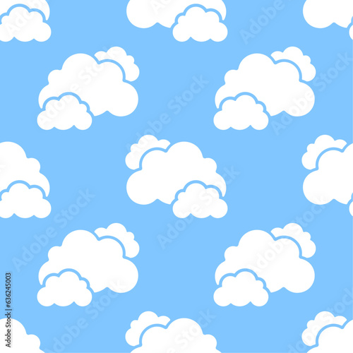 Cloudy sky. White clouds on blue background. Vector seamless pattern.