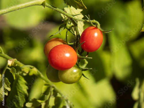 cherry, tomatoes, tomatoes, vine, tree branch, plant, flocked, ripe, ripening, green, red, growing, harvest, agriculture, farm, farming, fresh, organic, healthy, vegetable, vegetable, food, produce, nature, natural, leaf, sunny, sunlight, summer, season, vibrant, bright, nobody, closeup, macro, vertical, photo, background, high-coloured, crop, bush, juicy, cultivation, stem, bokeh, sweet, garden, growth