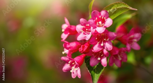 Cluster of vibrant pink flowers in bloom, sunlit background