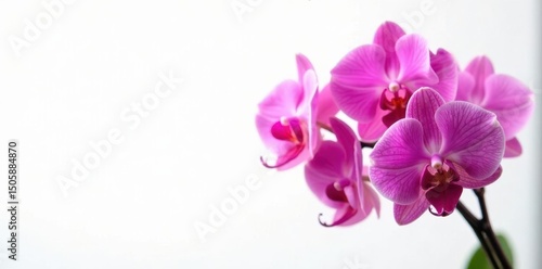 Cluster of vibrant pink orchids against stark white backdrop , orchid, isolated, background