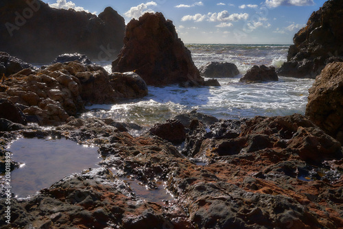 sea, coast, ocean, beach, water, landscape, rock, wave, sky, nature, rock, wave, blue, seascape, coastline, rocky, stone, shore, surf, cliff, bay, coastal, travel, summer, explore