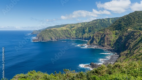 coast, ocean, sea, cliff, rock, shore, landscape, blue, green, nature, view, scenery, water, sky, day, summer, travel, tropical, beautiful, amazing, photo, photo, image, picture, horizon, wave, hill, vegetation, scenic, vista, panoramic, idylli, serene, calm, peaceful, tranquil, relaxing, bright, sunlit, clear, vibrant, natural, environment, wild