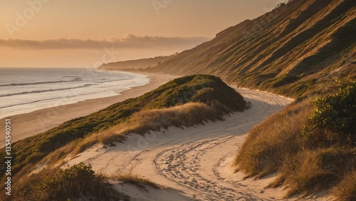 coastal, landscape, sandy, path, rolling, hill, sunset, wave, beach, nature, smooth, serene, tranquil, scenic, land, travel, adventure, summer, warm, peaceful, ocean, water, horizon, beauty, environment, sunlight, pathway, cloud, gold, leisure, scenic view, coastline, wild, grass, hillside, exploration, dusk, relaxation, no people, natural beauty, calmness, background, earth, colours, mood