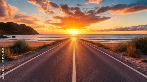 road, sunrise, sunset, beach, ocean, travel, vacation, adventure, scenic, coastal, drive, freedom, inspiring, motivation, destination, motivational, journey, horizon, cloud, sky, nature, beautiful, landscape, photo, view, trip, summer, pathway