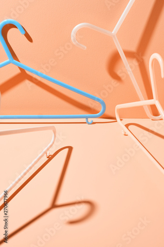 shadow, retail, plastic, pink, peachy, pattern, pastel, industry, hanger, graphic, fashion, colours, clothing, clothes, business, art, abstract, copy space, shape