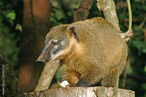 coati, feeding, south, american, mammal, close, view, background, branch, brown, dark