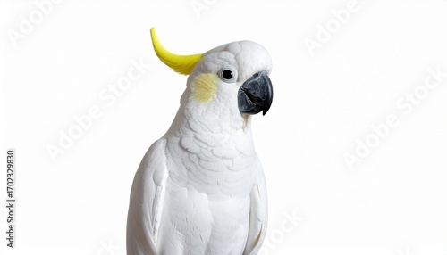 Cockatoo bird with white feathers yellow crest curved beak exotic tropical parrot isolated on white background