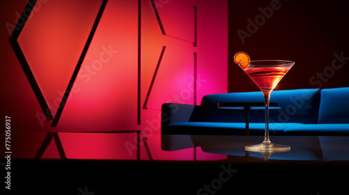 Cocktail. Verre à cocktail, boisson alcoolisée. Arrière-plan ambiance tamisée soirée, bar, boîte de nuit. Alcool, boire, fête. Avec espace vide de composition. Pour conception et création graphique.