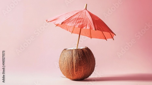 coconut, cocktail, pink, umbrella, parasol, summer, vacation, holiday, exotic, tropical, vibe, background, drink, beverage, refreshment, relaxation, beach, travel, tour tourism, destination, island, get-away, escape, paradise, sun, fun, joy, happiness, carefree, vibrant, colourful, minimal, simple, studio, still, life, copy, space, freshness, healthy, natural, organic, vegan, vegetarian, milk, cream, sweetness, creative, modern