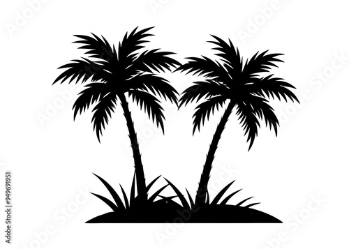 illustration, design, design element, clip art, symbol, white background, black-and-white, outline, cutting, object, logotype, logotype, icon, book, children, silhouette, line art, black-and-white, black, white, vignetting, element, cut-out, palm tree, coconut, nature, tree, summer, leaf, curve, simplicity, vertical, art, two objects, plant, palm leaf, tree trunk, no people, outdoors, dark, horizontal