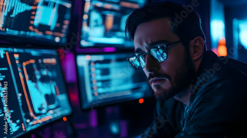 coding, developer, programmer, software, technology, code, screen, computer, work, dark, hacker, goggles, digital, sharpened, monitor, development, engineering