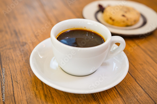 Coffee and cranberry cookies on a wooden table