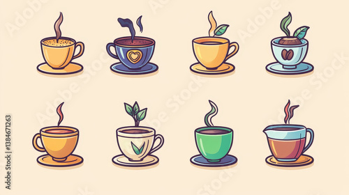Coffee and tea symbols and icons for beverage design, such a logo. Jpeg version also available in gallery
