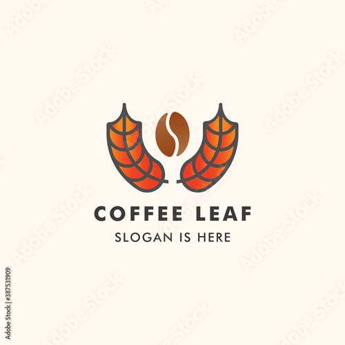 Coffee Bean Leaf Logo Design Icon Vector Illustration