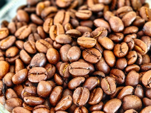 Coffee Bean Macro: A captivating close-up of roasted coffee beans, capturing their rich brown tones and intricate details.