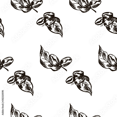 Coffee beans doodle pattern. Seamless picture on a white background. Vector illustration.