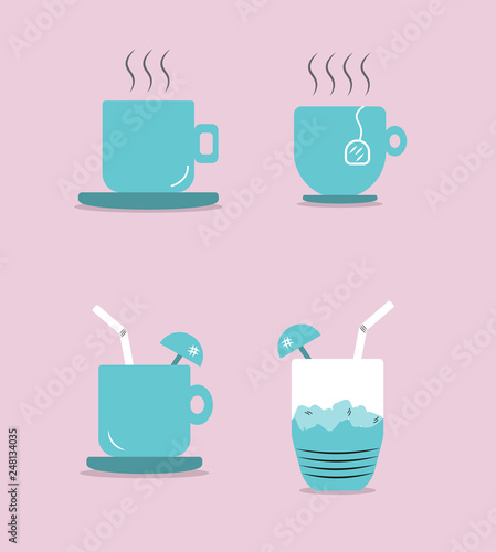 cup, hot drink, drink, tea, mug, cafes, hot, breakfast, illustration, isolated, icon, beverage, espresso, white, chocolate, morning, brown, cappuccino, aroma, vector, food, design, set, black, glasses