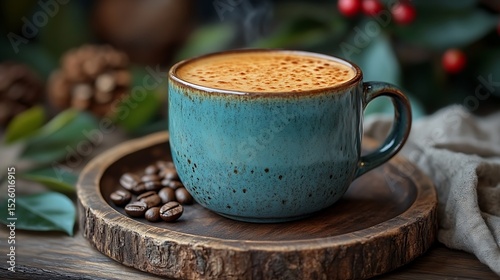 hot drink, beverage, mug, hot, drink, cup, steam, coffee bean, teal, ceramic, wooden, coaster, tray, leaf, berry, warm, cosy, home, cafes, relaxation, morning, evening, breakfast, smooth, isolated, background, natural, still life, delicious, tasty, hot drink, aromatic, brew, hot beverage, comfort, relax, simple, food, image, beverage, good, food photography, eatery, afternoon