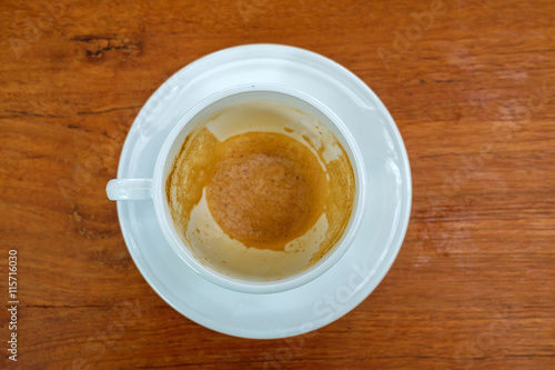 cup, hot drink, breakfast, drink, coffee break, brown, white, coffee time, background, food, beverage, refreshment, sweet, cafes, hot, break, espresso, cappuccino, late, wooden, table, closeup, dessert, cafes, caffeine, fat, refresh, mellow, taste, bitter, bubble, epicure, topview, bottom, depleted, low, few, little, empty, saucer